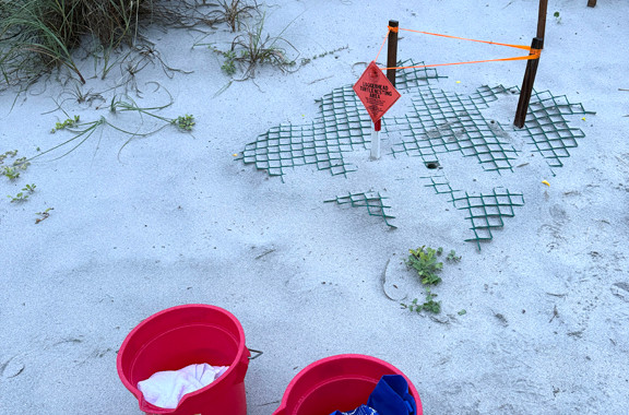 Nest 21 was laid the day after Nest 20 nearby at 810 Ocean Blvd on June 30, also in the active project area ongoing by the US Army Corps of Engineers. This one was reported by Jeannie Milota and Peggy Klimecki, contained 103 eggs, and incubated for 52 days. Today we found 80 empty eggshells, 22 undeveloped eggs, two dead and one live hatchling. Susan Lipsey released this one along with the two from her Nest #20. Hatch Success was 77.6% and Emergence Success was 74.7%.