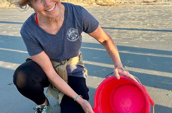 NEST #6 was found by Michael and Ashley Kirshtein at Station 29 while Cyndy Ewing was patrolling the other end of this section. It was a large clutch of 153 eggs that were first moved to Station 26. But when it was 48 days old with hatchlings almost ready to come out of the nest, we had to do an emergency relocation with permission from SCDNR because it was falling into the surf because Hurricane Erin was passing by. It was moved higher at that some location and turtles came out very soon afterwards. Now the spot where it was first is gone from erosion. Because no tracks were ever reported, and we were not sure, we waited another week before doing today's inventory. It was indeed a pleasant surprise to see that only 4 of the eggs failed to develop. There was also one dead hatchling and one live one who was slightly deformed and was still alive in the nest. Gail Cyzman released it, and it needed help on its way to the ocean. Even though this nest had a 96.7% hatch success, these results did not appear in the nesting database because we had to disturb it and may have skewed the results slightly. We were just pleased to have a Labor Day hatchling to release!