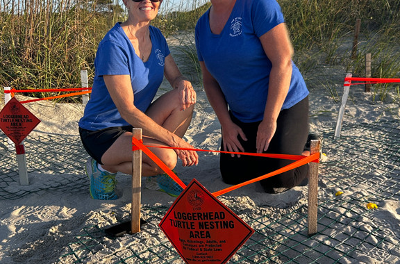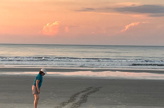 Susan Lipsey and Elizabeth Rast had just started their walk covering 9th Avenue to Breach Inlet when Susan discovered tracks near the 8th Avenue Access Path. This loggerhead's tracks were a little irregular perhaps from a damaged flipper, but they mostly measured 19-21". One egg was found broken in the clutch of 122 and it was used for the DNA sample. Once again a nest was laid in the Corps of Engineers' active renourishment area and had to be moved off the flat beach where trucks drive to a safer spot near 30th Avenue.